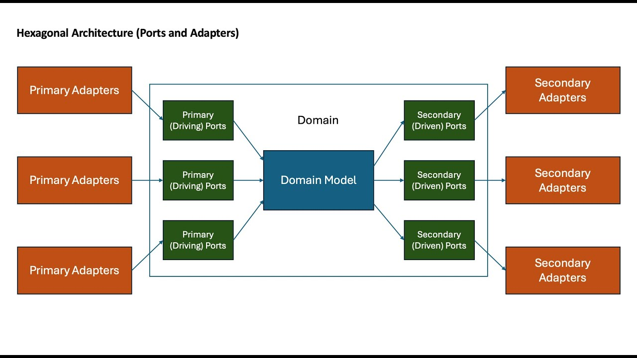 OrderRepositorywith another adapter (API, in-memory, etc.) without changing the service.This keeps the domain isolated, fulfilling Hexagonal principles.